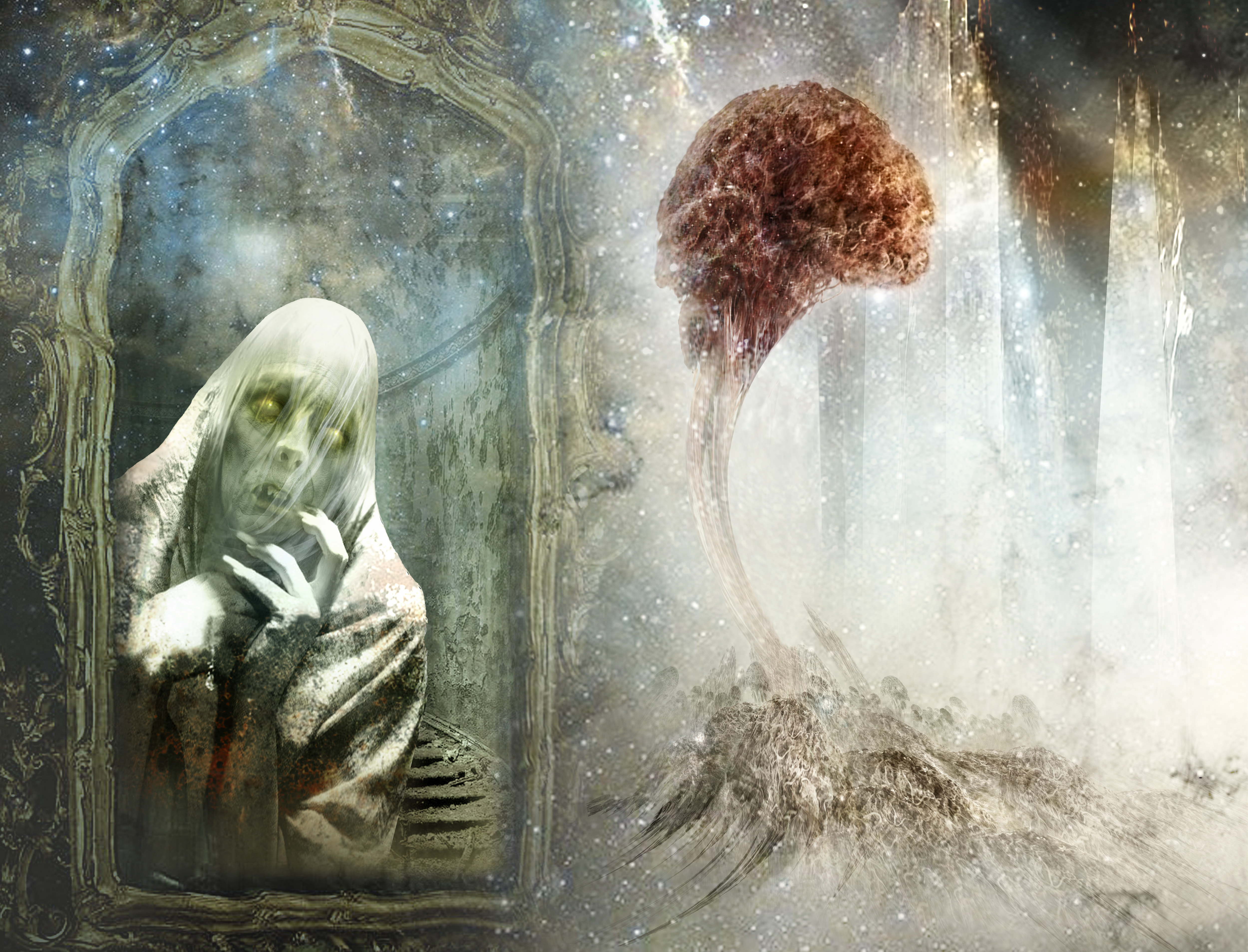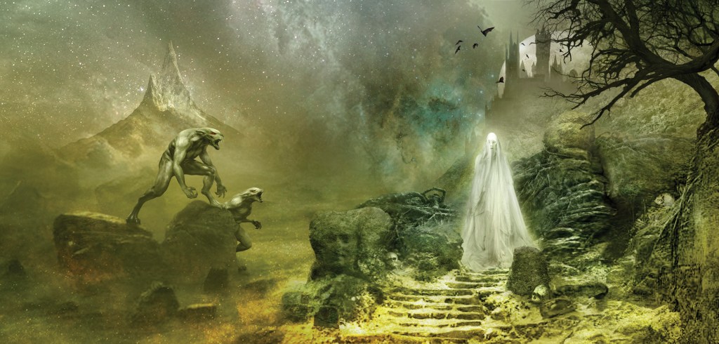 Other digital art that Burns produced includes the cover art for the limited collectors’ edition of short stories from Centipede Press, Weird Tales. The stories are all from the ‘golden age’ of weird and horror fiction — the 1920s and 30s. Burns also designed as digital art a separate frontispiece for the book as well.