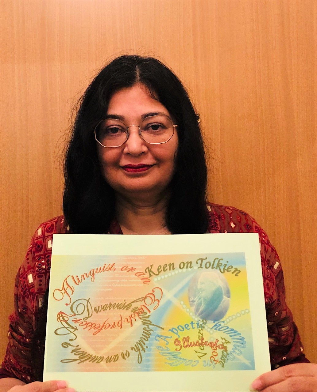 A little-explored topic is the similarity between Celtic languages and Sanskrit. Since Quenya is inspired partly by Welsh, it would be a gigantic task to identify the roots of certain words in Quenya, as originating in Welsh and by extension possibly in Sanskrit. Therefore, studying Tolkien’s worlds, or the works of other major writers from the lens of other cultures can lead to new avenues of research, bringing diverse societies closer together, as we could begin to appreciate the values we have in common more than our differences. Though it was challenging, I managed to translate an excerpt each from The Hobbit and Lord of the Rings into Urdu, which I then recorded and sent to the Tolkien Society. My videos were displayed on Tolkien Reading Day 2021, along with others in different languages on the website of the University of Glasgow Centre for Fantasy and the Fantastic.