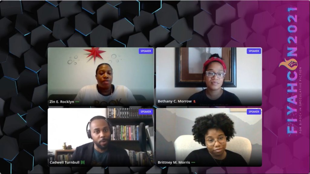 The importance of community and empowerment was present throughout the convention, and FiyahCon’s utilisation of the Airmeet platform made interaction between panellists, guests and attendees easy and inclusive. The daily write-ins, breakout tables and office hours available provided FiyahCon with vital opportunities for socialization and networking that some virtual conventions often lack. One attendee even organised a collaborative reading list, comprised of all the works mentioned, celebrated and discussed. The two ‘Em-Dash’ writing game shows were also great fun, both for the participants and viewers alike. ‘Em-Dash’ challenged writers to create short pieces of flash fiction in three short rounds, including random scenarios, tropes and ingredients selected by the FiyahCon community.